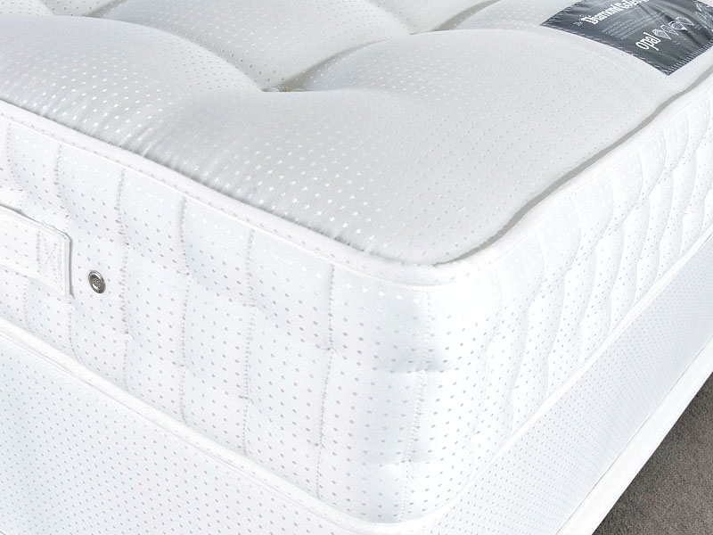 The Opal; with its impressive 1500 pocket springs and traditional ‘hand side stitched border’ A welcome addition to our pocket sprung range, with sumptuous fillings and wool, cotton, polyester comfort layers. Exceptional quality damask cover, hand tufted panels and tailored border. This 10″ 25.4cm deep mattress, will provide many years of luxurious sleep.