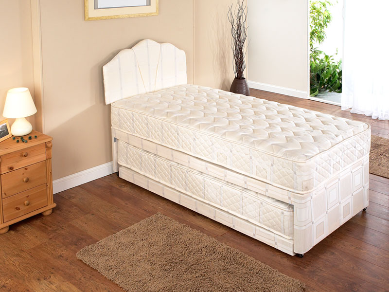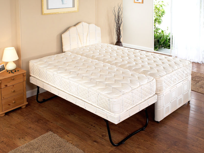 Supremo 3in1 Guest bed whether you require one single bed or two single beds or even a Super king size bed. All packaged together, conveniently disguised as a standard single bed. Micro-quilted damask medium feel mattresses. Mattresses 18cm 7″ Deep.